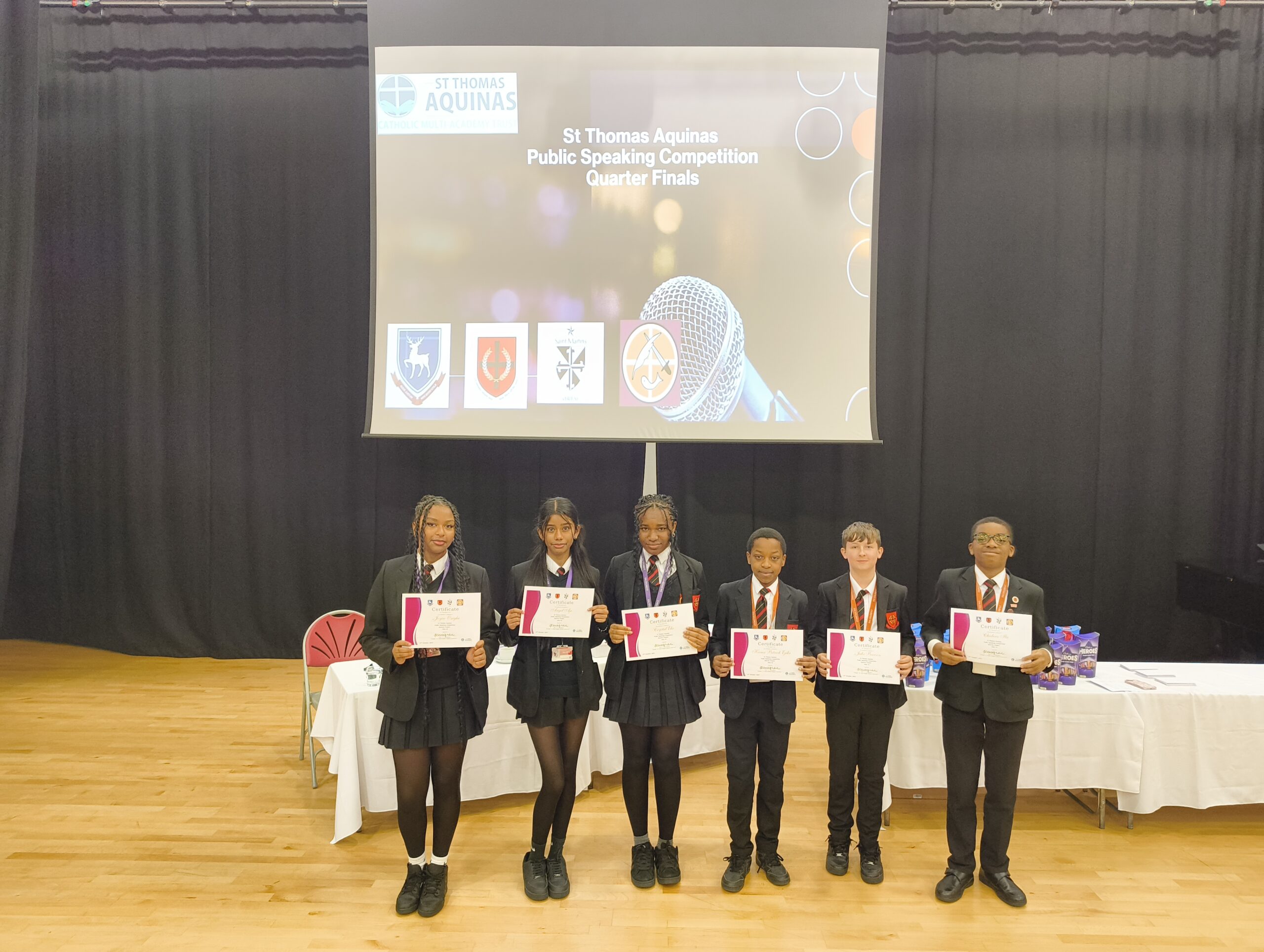 The Annual Trust Speaking Competition Quarter Finals took part on Wednesday 15th October at English Martyrs Catholic School. Students from De Lisle, St Martins and St Pauls took part in the competition. Three students from year 8 took part in the junior part of the competition. We also had three students from year 9 take part in the senior part of the competition. They all spoke with confidence and answered questions from the judges. Congratulations to Chidera 8Mo and Crystal 9Al who progressed to the semi-finals! Good luck for the next round.